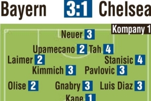 图片报赛后评分:凯恩1分、帕尔默3分 于帕、奥利塞、莱默尔获2分