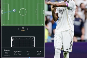 据统计,米利唐的这脚远射的预期进球只有0.02。