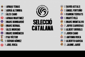 1-特纳斯(比利亚雷亚尔)、2-阿尔蒂米拉(比利亚雷亚尔)、3-亚历克斯·卡诺(CE欧罗巴)、4-阿尔瑙·马丁内斯(赫罗纳)、5-邦巴(安道尔FC)、6-伯纳尔(巴萨)、7-亚历克斯·莫雷诺(赫罗纳)、8-马克·多梅内克(安道尔FC)、9-保·维克托(布拉加)、10-塞尔吉奥·戈麦斯(皇家社会)、11-乔尔·罗卡(赫罗纳)、12-阿斯塔尔斯(萨瓦德尔体育)、13-福图尼奥(西班牙人)、14-特拉茨(西班牙人)、15-马蒂·维拉(安道尔FC)、16-蒙塔尔沃(塔拉戈纳体操)、17-乔弗雷·卡雷拉斯(西班牙人)、18-奥里尔斯(萨瓦德尔体育)、19-乔迪·卡诺(CE欧罗巴)、20-安东尼奥·罗卡(西班牙人)、21-阿尔伯托·加西亚(圣安德鲁联盟)、22-雅尔迪(塔拉戈纳体操)